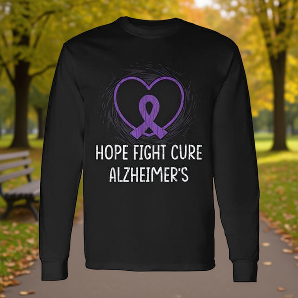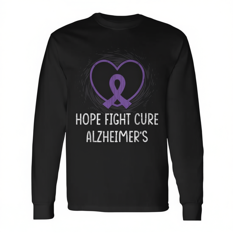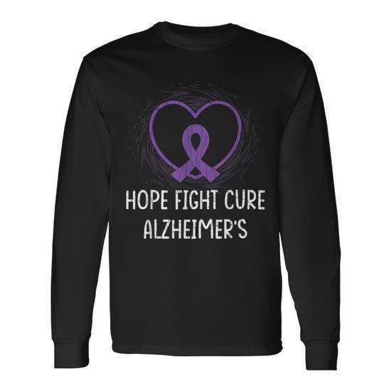T-shirt a maniche lunghe con grafica viola per la consapevolezza sulle malattie da Alzheimer, Hope Fight Cure