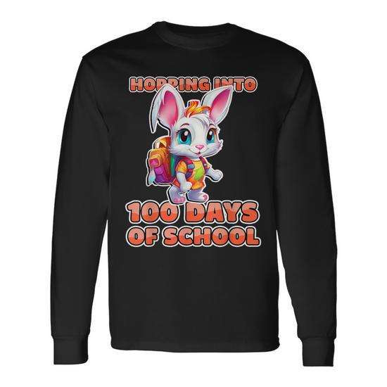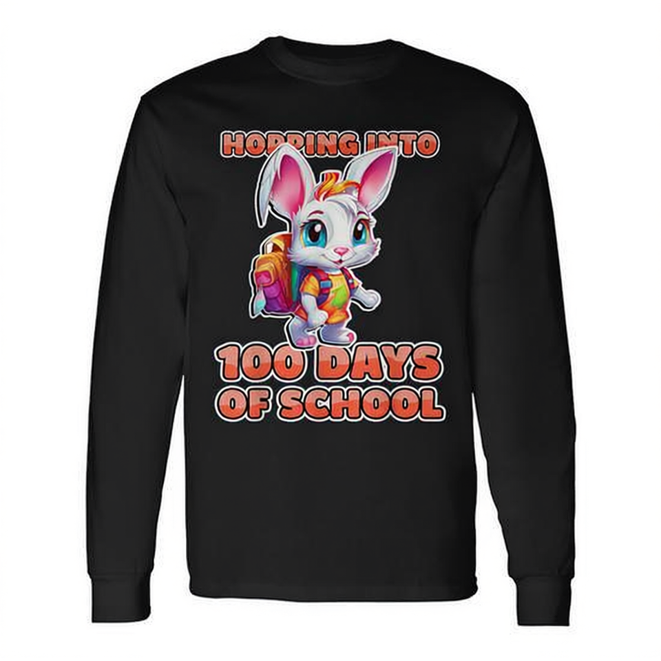 Maglietta a maniche lunghe con stampa Coniglio che salta per celebrare i 100 giorni di scuola