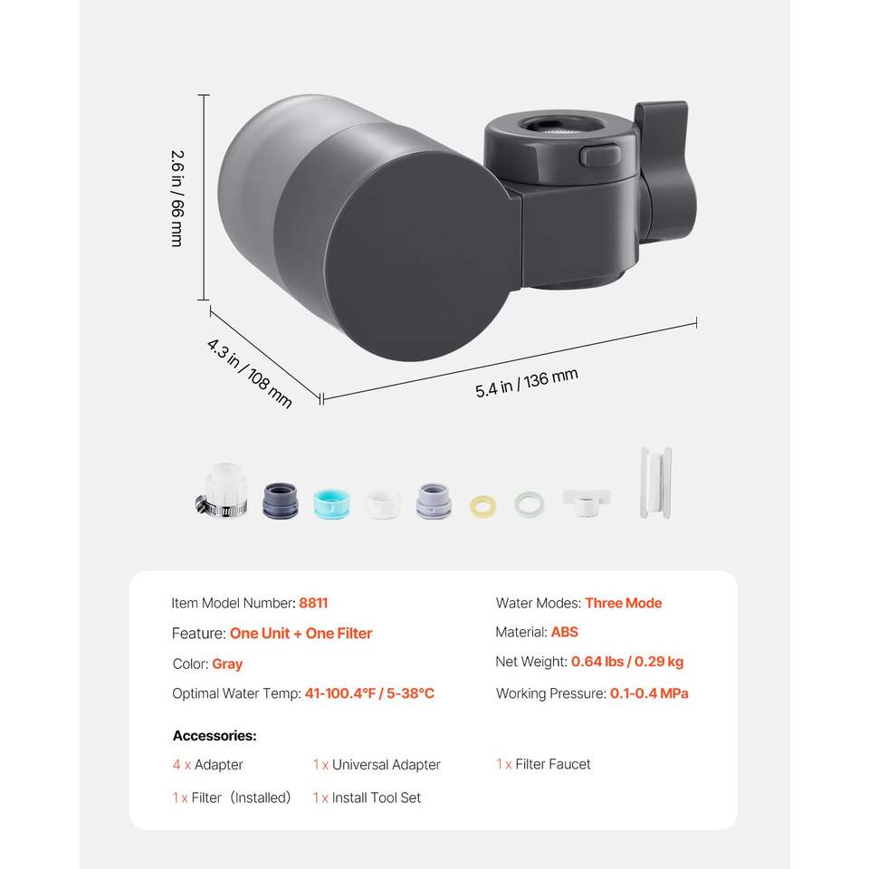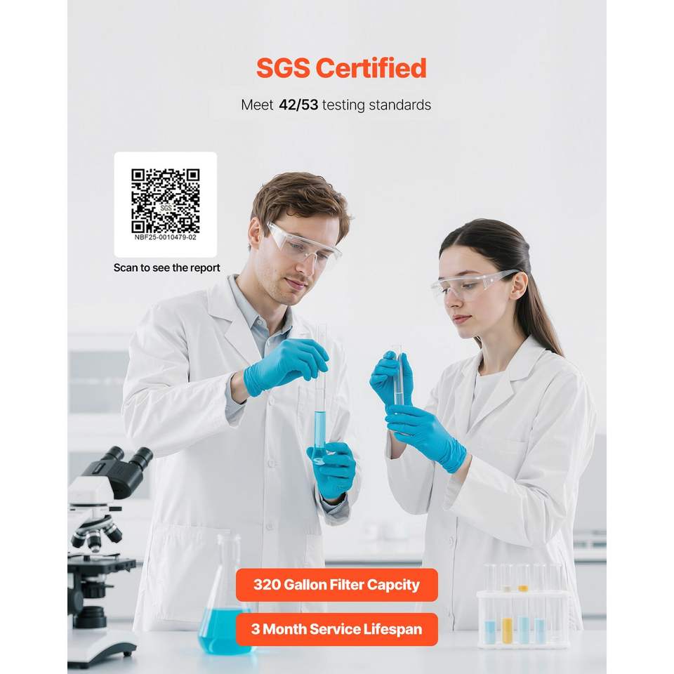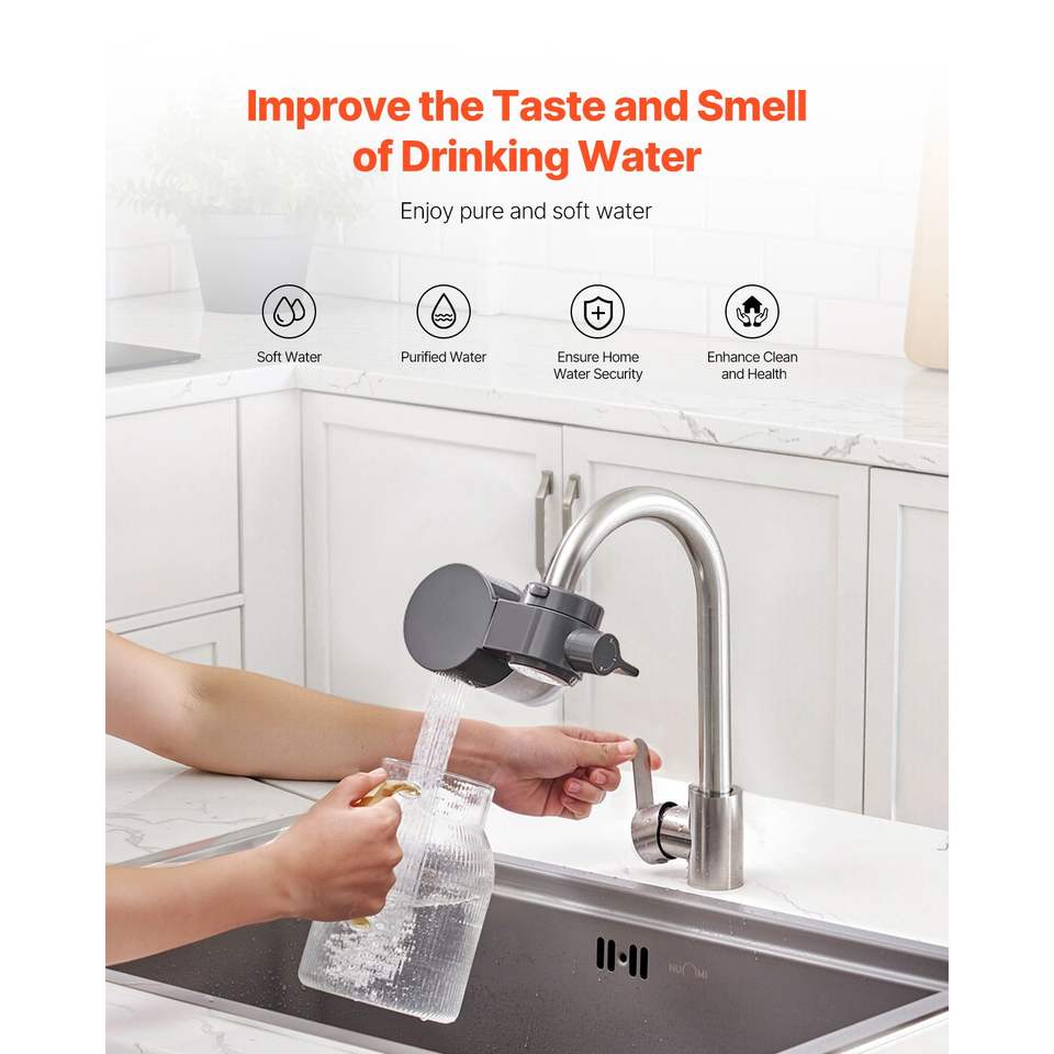 Filtro Acqua Orizzontale per Rubinetto in Fibra di Carbonio, Purificatore per Lavello, Rimuove Cloro e Piombo, 1 Filtro Incluso