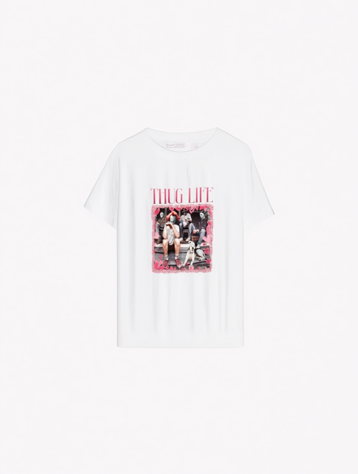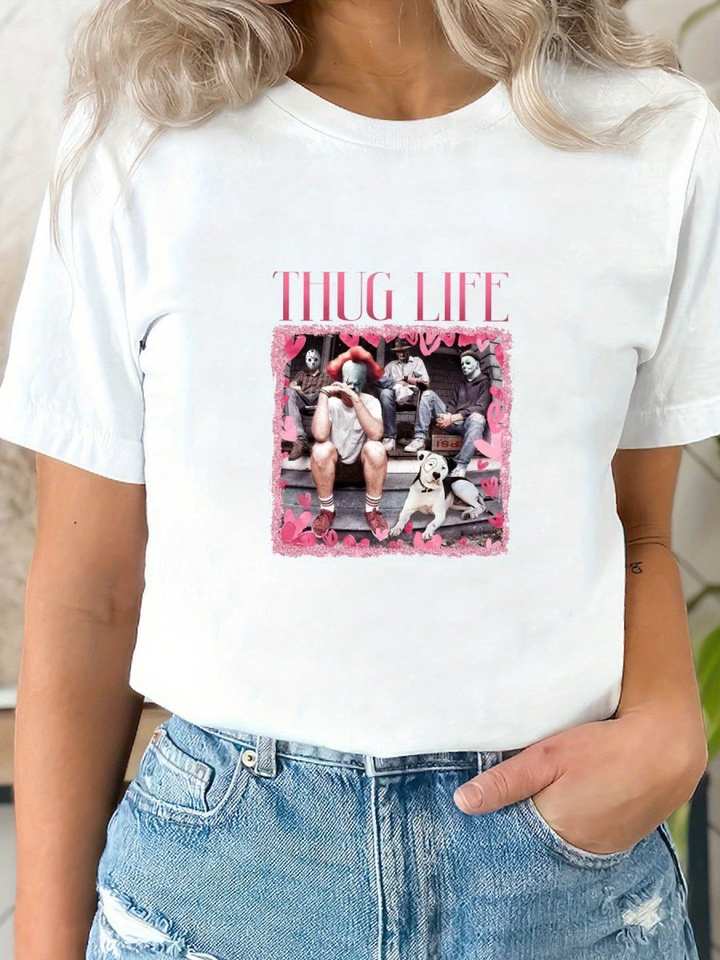 Horror Valentine's Day Women's T-Shirt Retro Cupid Blowing Bubbles Short Sleeve Casual Daily Wear 100% Cotton Jersey Print