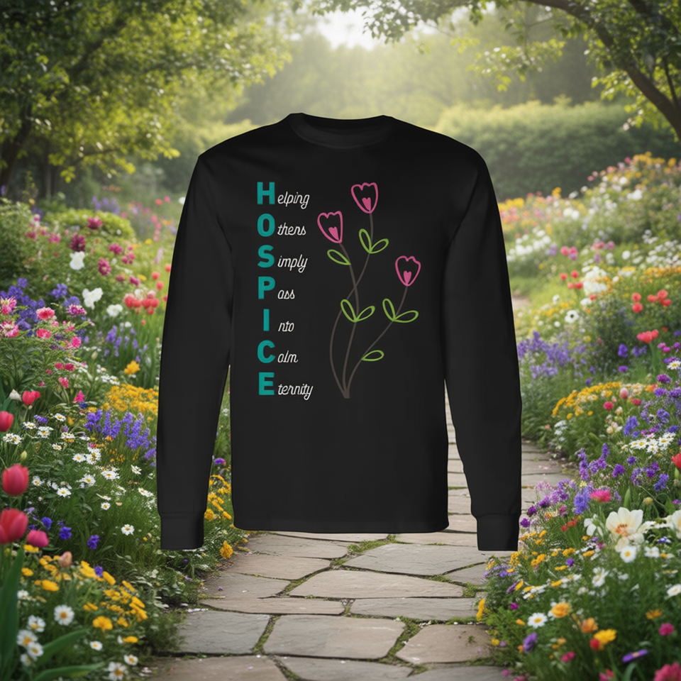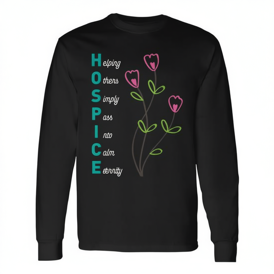 Maglietta a Maniche Lunghe 'Hospice Helping Others' con Scritta 'Simple Into Calm Eternity' per Uso Promozionale