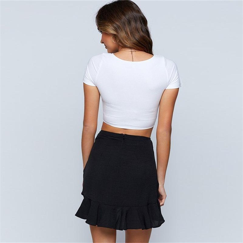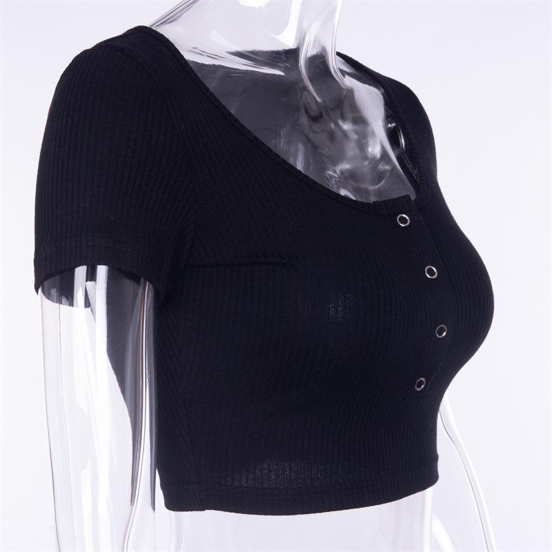 Top Corto a Maniche Corte con Bottoni in 3 Colori, Maglietta Estiva Sexy Elasticizzata in Maglia, Nuovo Design con Collo Tondo
