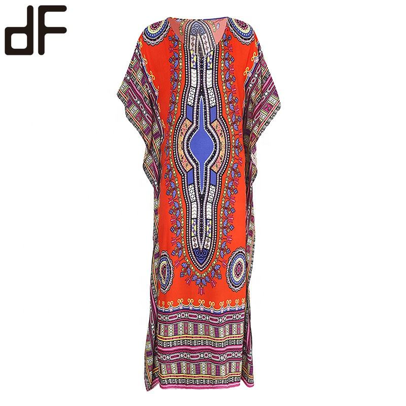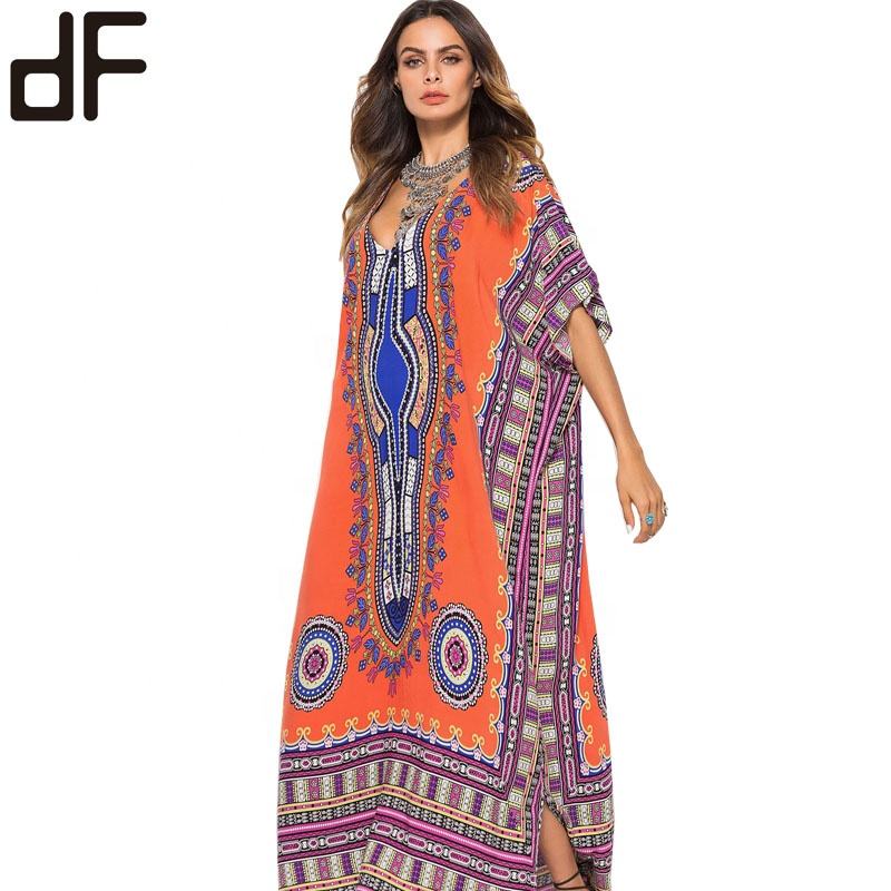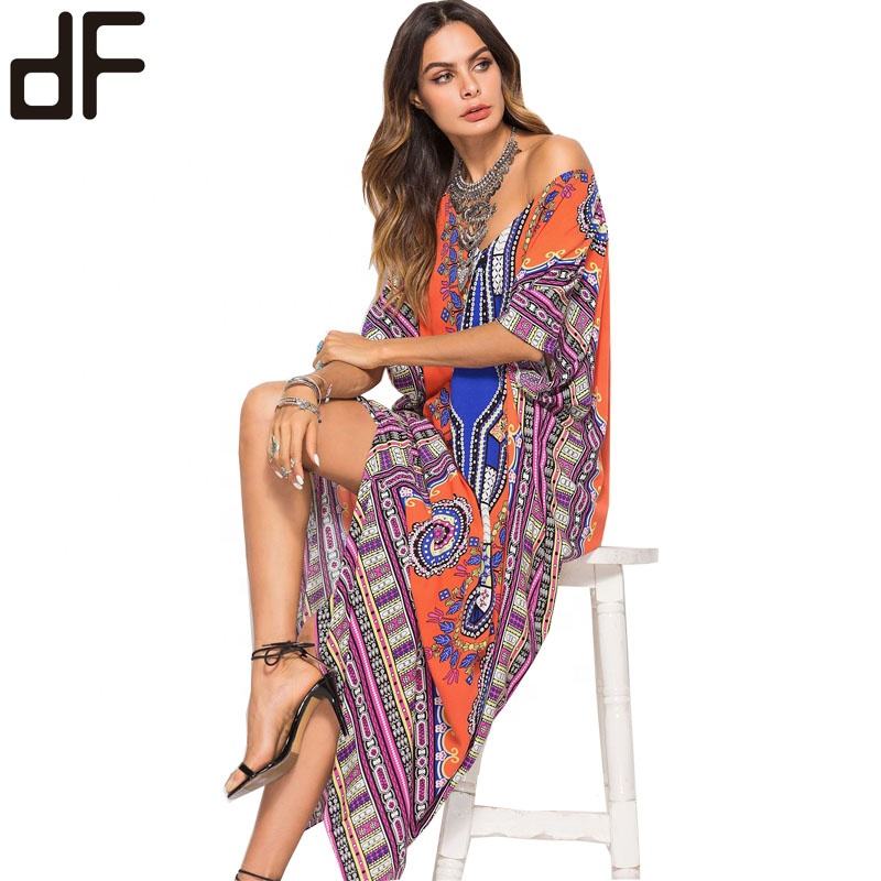 Hot Boho Dresses Women Lady Elegant Casual Clothing Straight Cut Beach Kaftan Dress Vestidos Print Dress Tunic Tops Beach Kaftan
