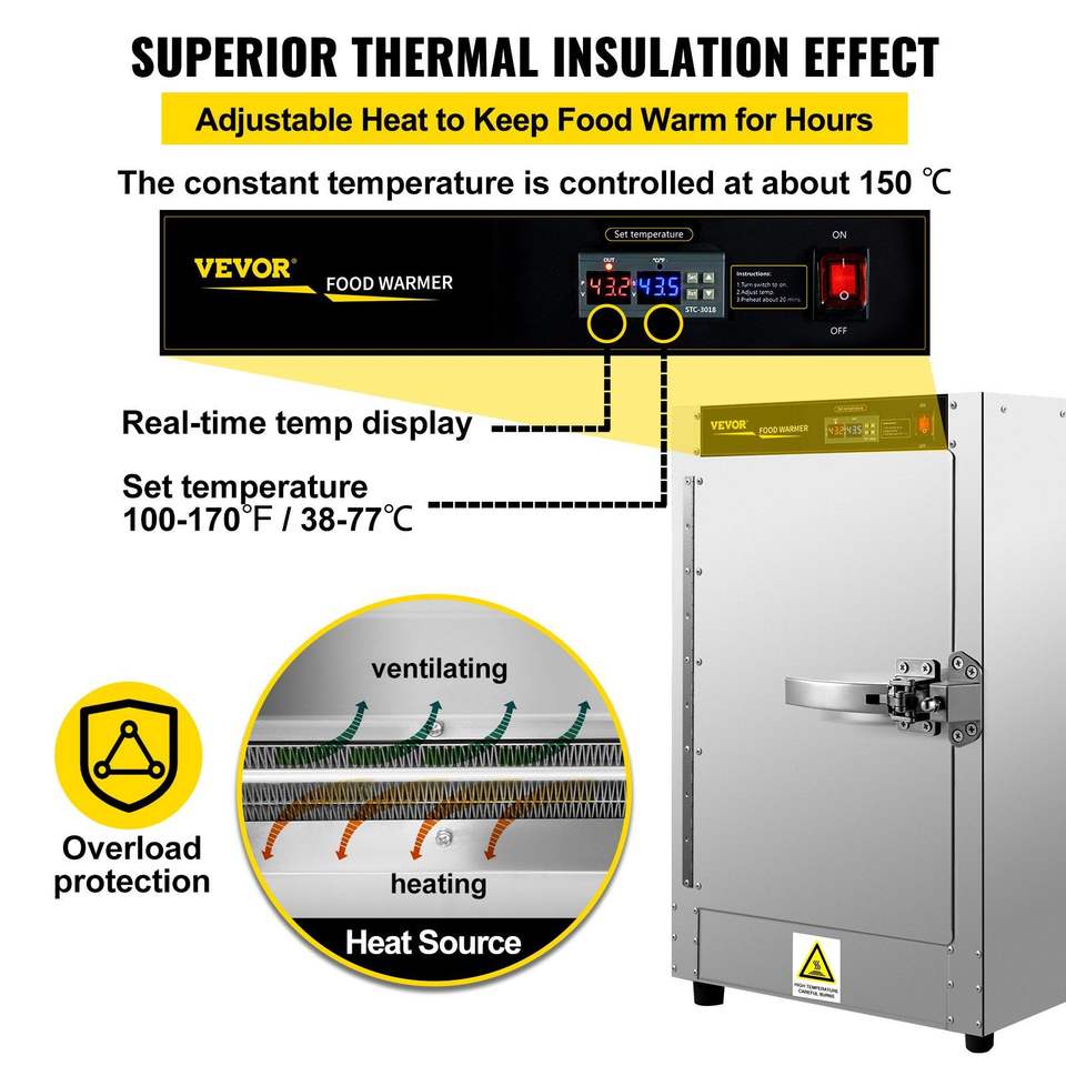 Scaldavivande professionale da banco 40x40x60 cm con vassoio per acqua e quattro vaschette usa e getta per catering, ideale per pizza e altri alimenti