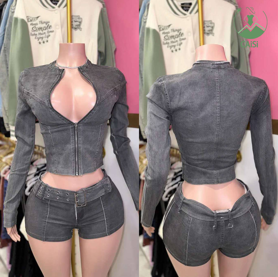 Hot Casual Denim 2 Piece Sets Women Long Sleeve Jacket Trendy Shorts Suits Streetwear Jeans Two Piece Set for Ladies