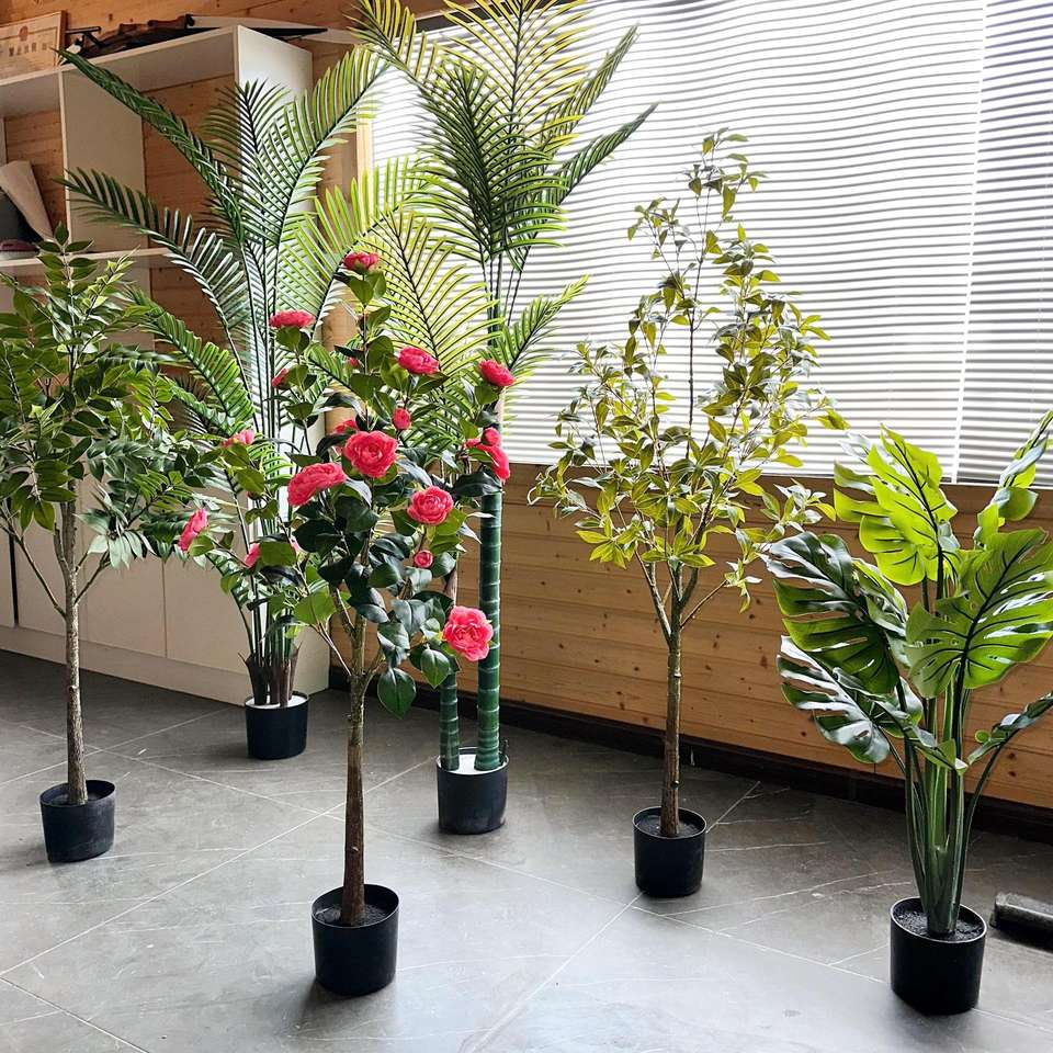 Vendita calda transfrontaliera di plastica verde ornamenti per alberi di simulazione di legno bevuta di cavalli Banana Bonsai piante artificiali da interno