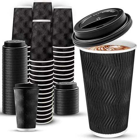 Caldo Design personalizzato Logo biodegradabile parete ondulazione tazza di carta in plastica libera con coperchi Taka tazze di carta per caffè Kraft