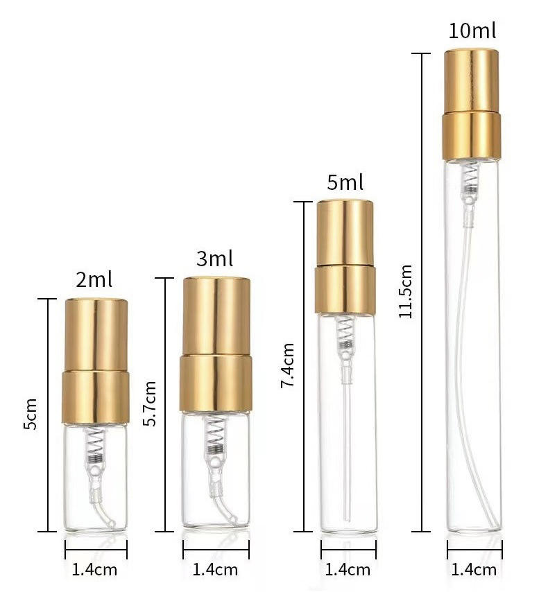 Flaconi di Profumo in Vetro da 2 ml, 3 ml, 5 ml, 10 ml con Atomizzatori Spray Ricaricabili in Alluminio