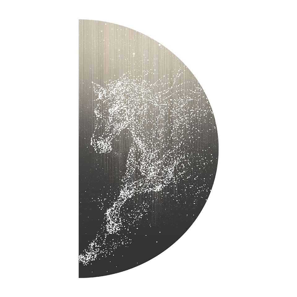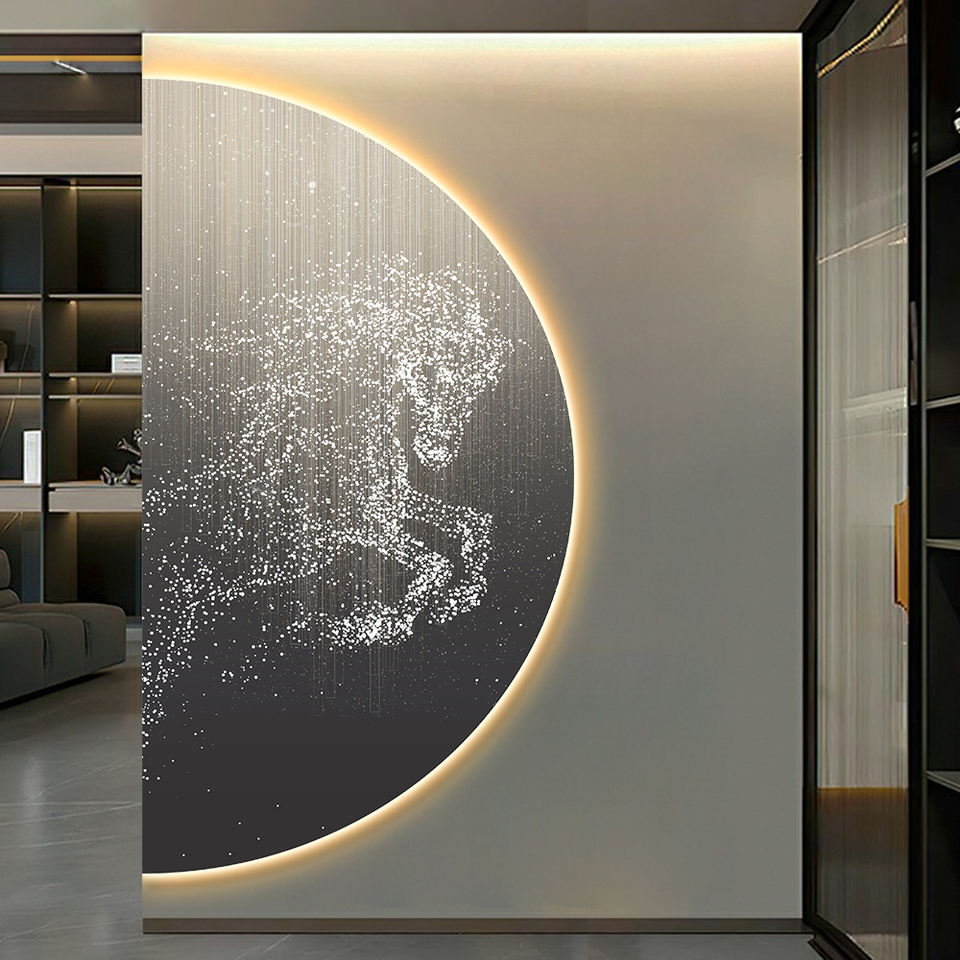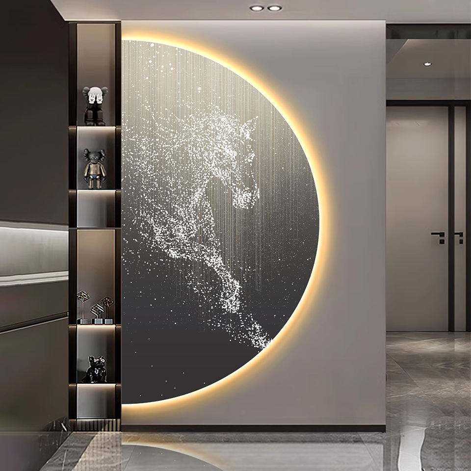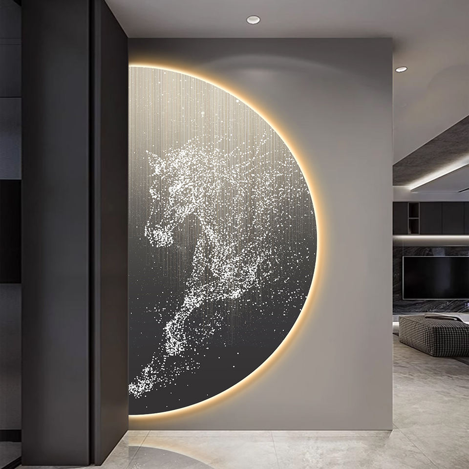 Quadro in Porcellana Luminoso a LED, Arte Murale Semicircolare con Cavallo e Paesaggio, Design con Illuminazione LED
