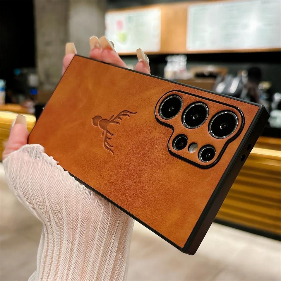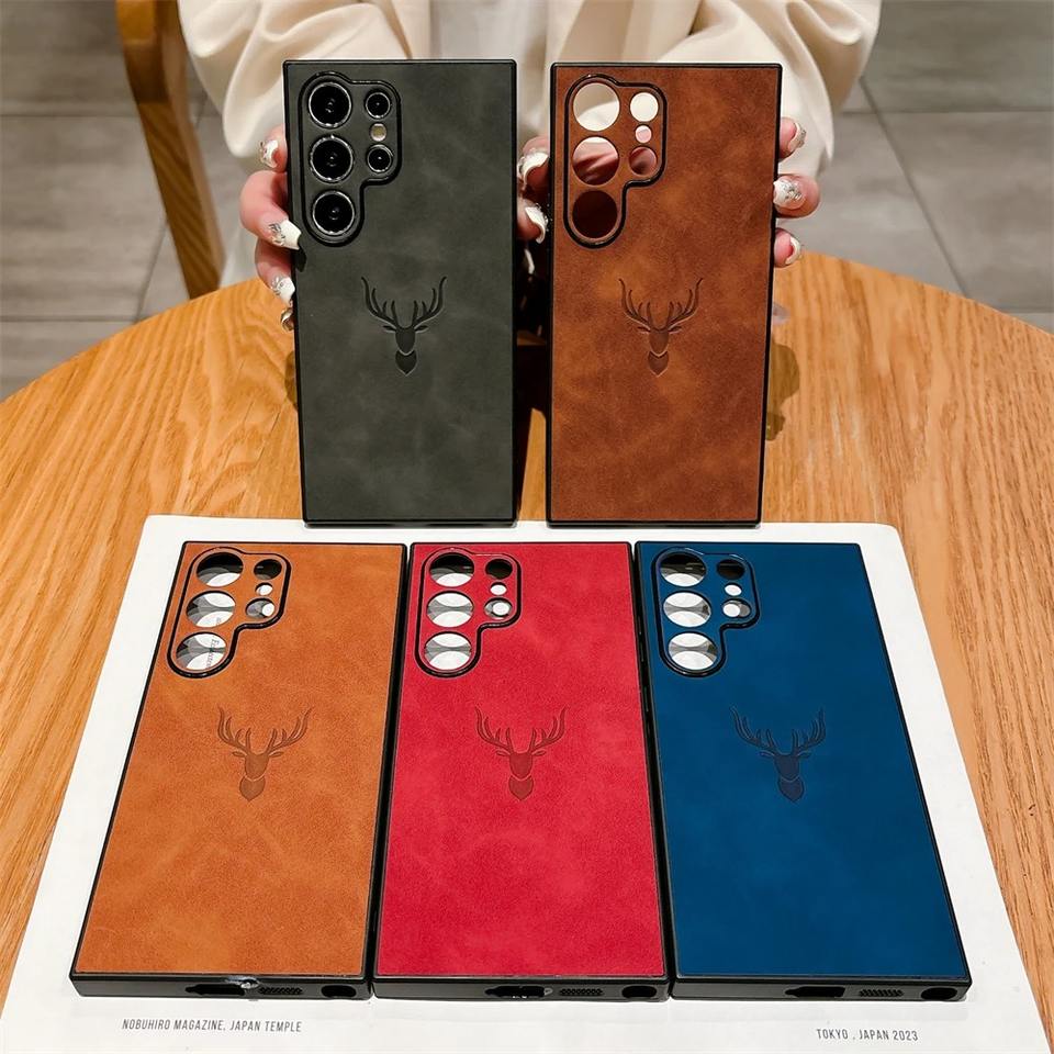 Custodia per Telefono in Pelle PU di Lusso con Rilievo a Cervo Antiurto per Samsung Galaxy S26 S25 S24 S23 S22 S21 Ultra A55 A54 A53 A33 A34