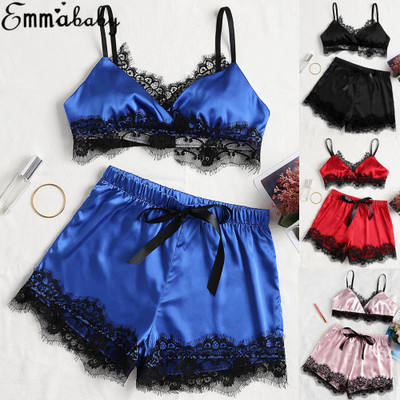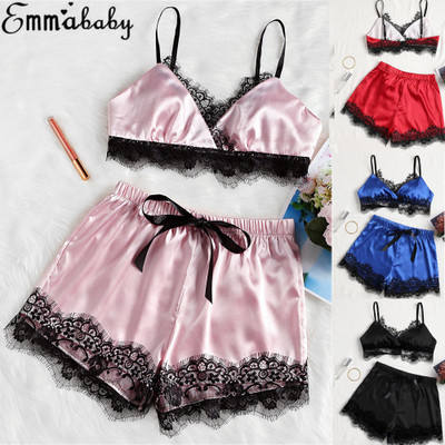 Hot Night Ladies Sexy Lingerie Set Satin Bra and Shorts Set Sexy Girl Pajama Sets Satin Bra Eyelash