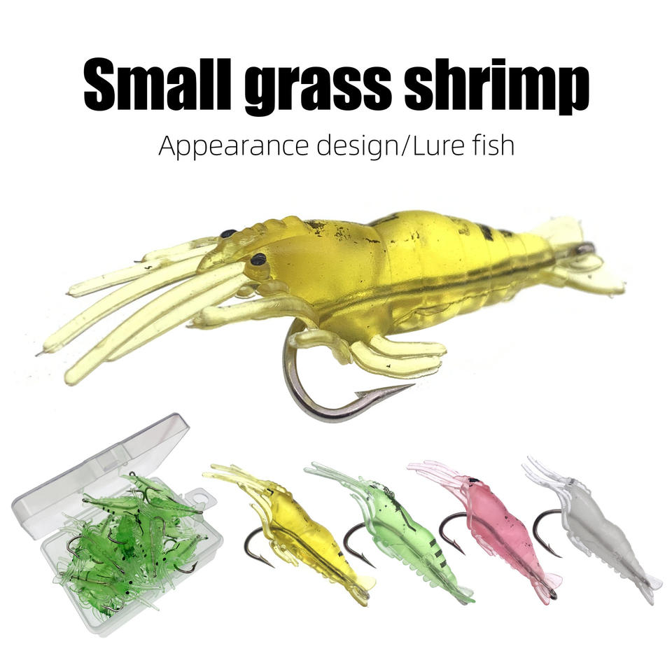 Esclusivo OEM: Esca Artificiale Morbida Luminosa da 4cm, 10 Pezzi in Scatola, a Forma di Gamberetto, con Odore di Pesce, in PVC, con Amo, per la Pesca in Mare