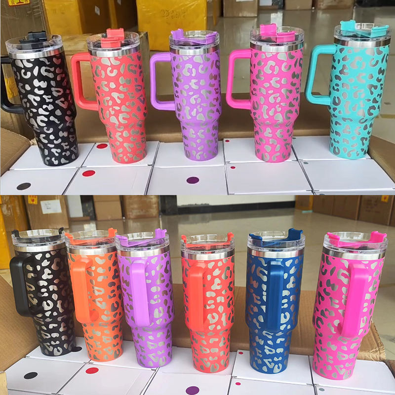 Tazze da 40 once con stampa a zampa calda con manico tazze da caffè con isolamento sottovuoto in acciaio inossidabile a doppia parete di colore personalizzato all'ingrosso