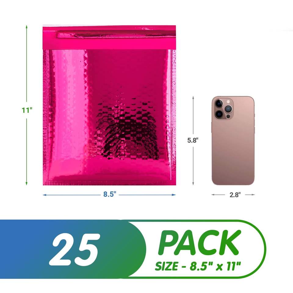 Hot Pink 8.5 X 11 Inches Metallic Bubble Mailers 25 Pack Waterproof Padded Envelopes Bright Foil Shipping for Fragile Items