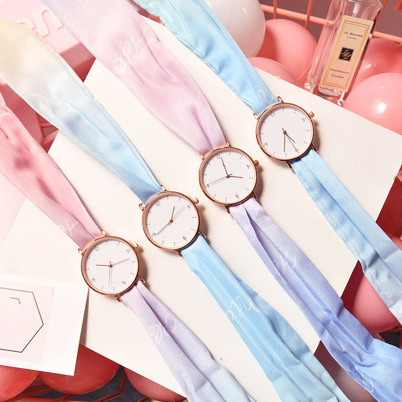 Popolare caldo bella nastro della vigilanza in oro rosa rosa della fascia montre di buona qualità del tessuto della fascia minerale di vetro cina novità orologio
