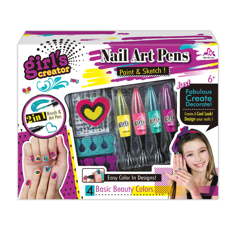 Popolare caldo Delle Ragazze Cosmetici Gioco Trucco Giocattoli Per Bambini FAI DA TE Nail Art Studio A Base D'acqua Buccia Off Nail Polish con Glitter spruzzatore Penna