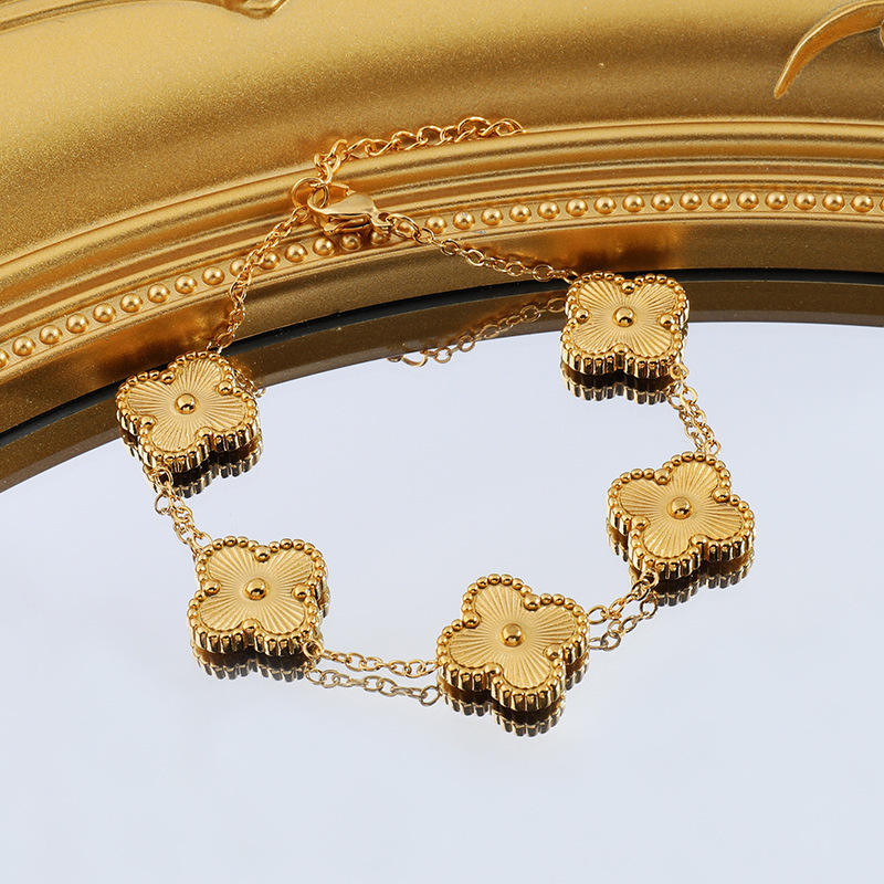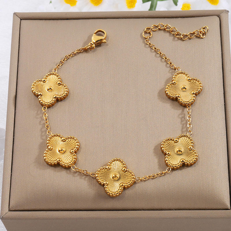 Bracciale Portafortuna a Forma di Quadrifoglio in Acciaio al Titanio Placcato Oro 18k per Donne, Regalo di Compleanno