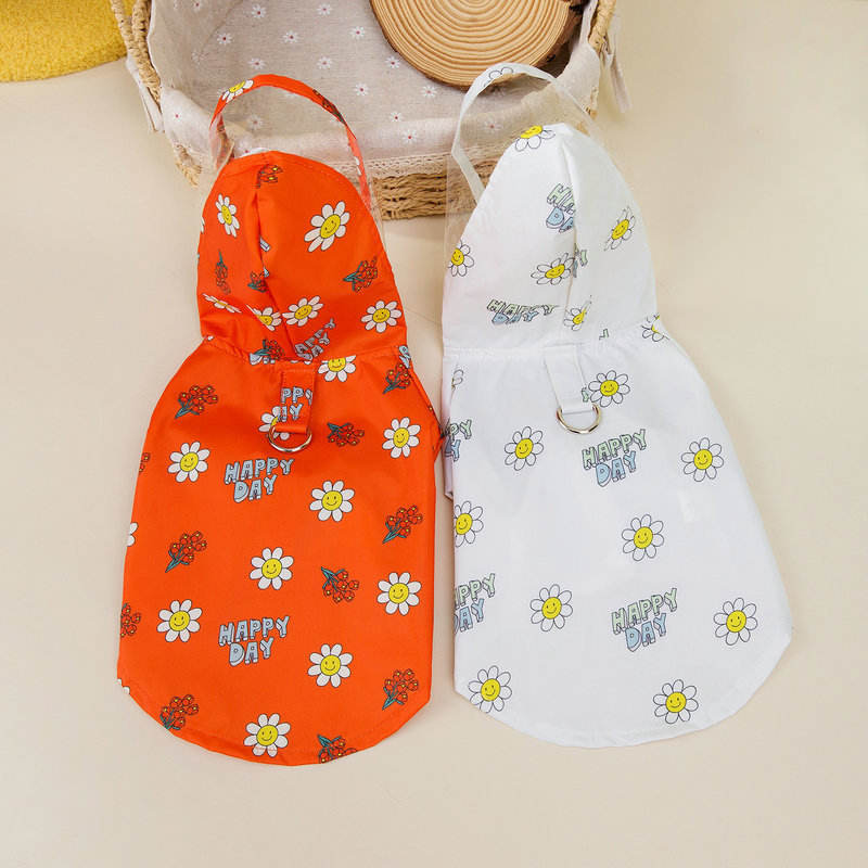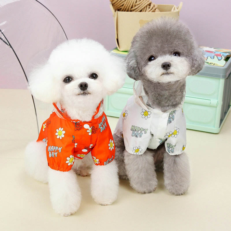 Vendita calda 2024 primavera ed estate pet dog vestiti due piedi stampe floreali cane impermeabile per cani di piccole dimensioni medio orsacchiotto
