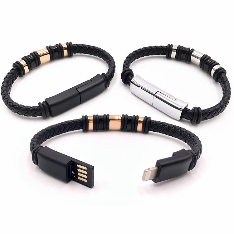 Vendita calda 22.5 centimetri trasporto Marittimo A Corto di Ricarica USB Cavo Dati Per Il Iphone Tipo C Micro Caricatore Cavo USB Braccialetto di Cuoio