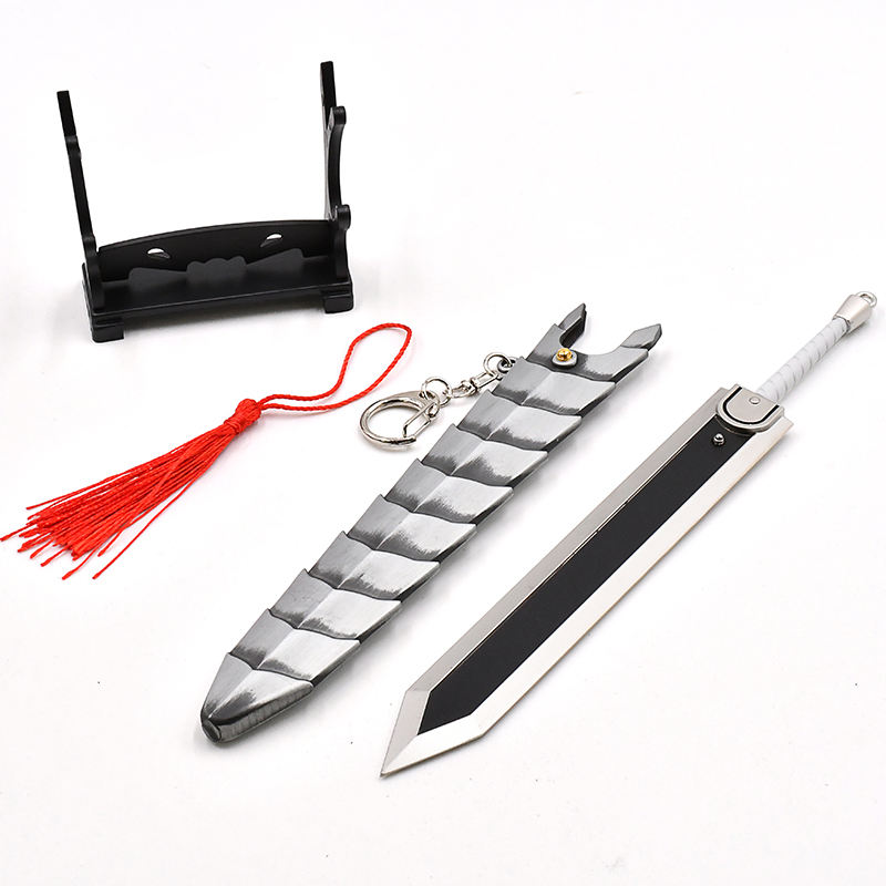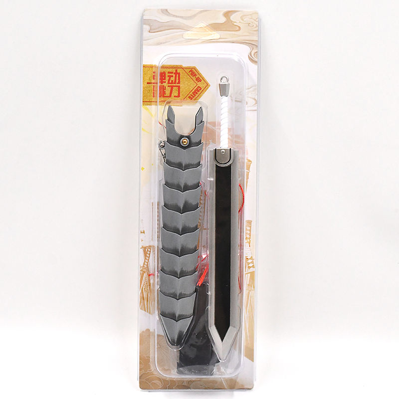 Vendita calda 22cm in lega di metallo budella Berserk spada portachiavi Pop-up Anime Dragonslayer Mini Katana per la collezione Cosplay
