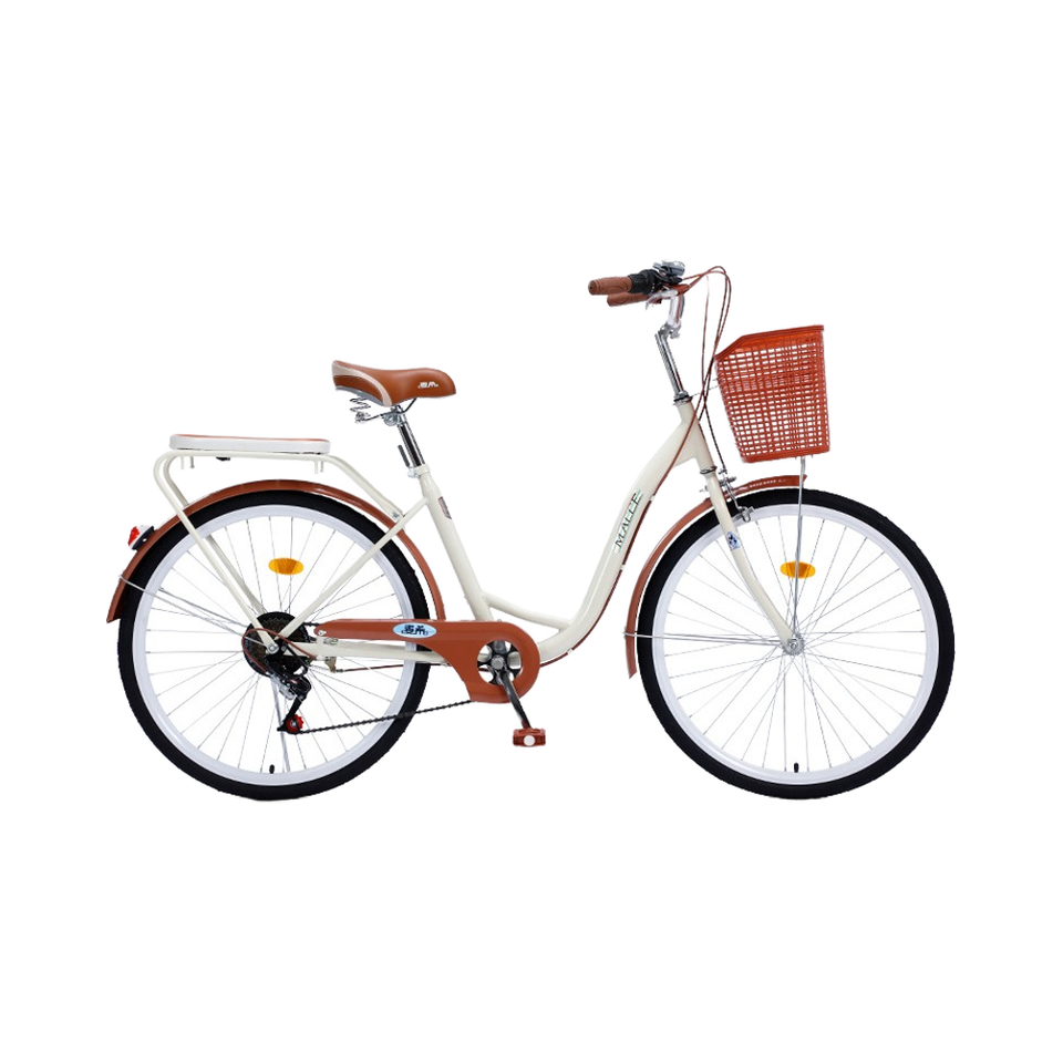 Bicicletta Classica Vintage da Donna in Offerta Speciale da 24/26 Pollici, Bici da Città per Donne in Acciaio ad Alto Tenore di Carbonio con Cestino