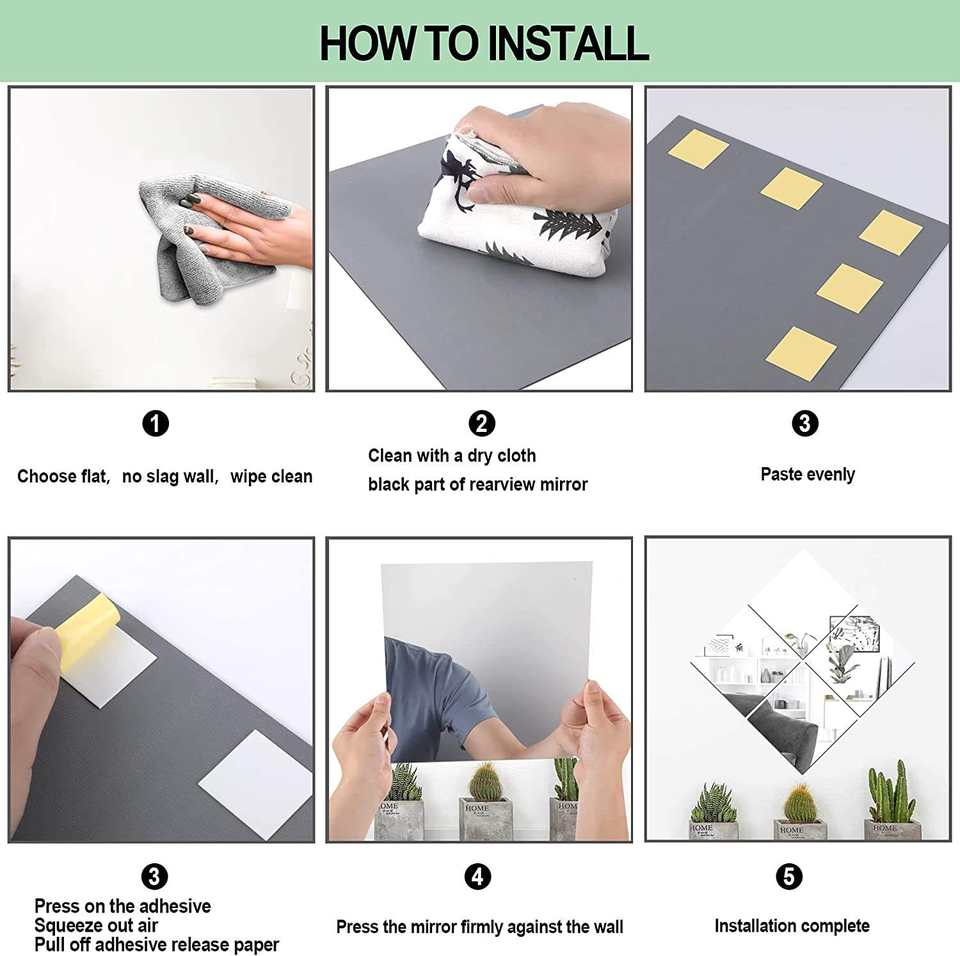 Hot Sale 30*30cm*1mm Square Acrylic Mirror Self Adhesive Solid Mirror for Home Decor Wall