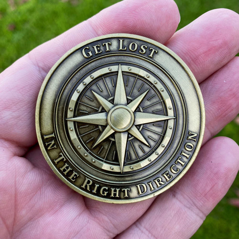 Vendita calda 3D accessori avventura di alta qualità monete di metallo personalizzate nella giusta direzione in ottone sfida moneta bussola all'ingrosso