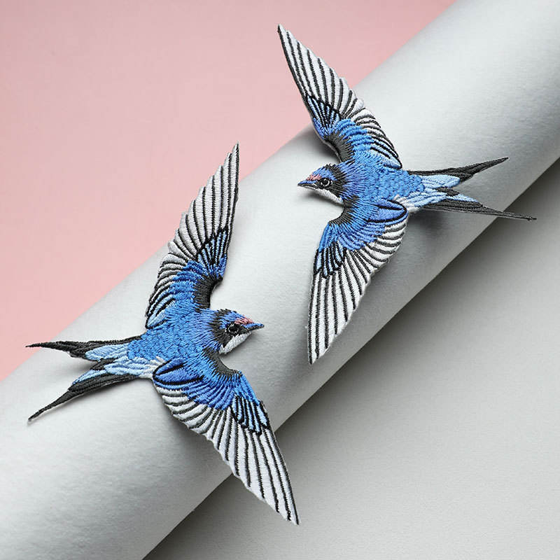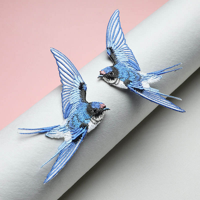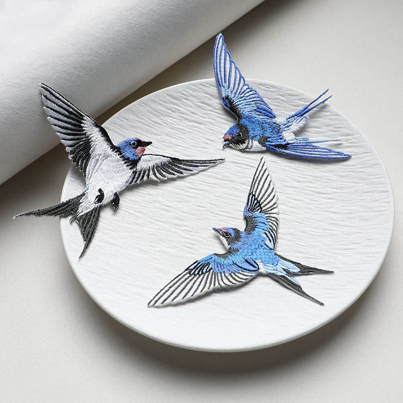 Vendita calda 3D ferro-On uccello ricamato Patch nuovo disegno di rondine in bianco di Design animale tessuto adesivo Applique per vestiti all'ingrosso
