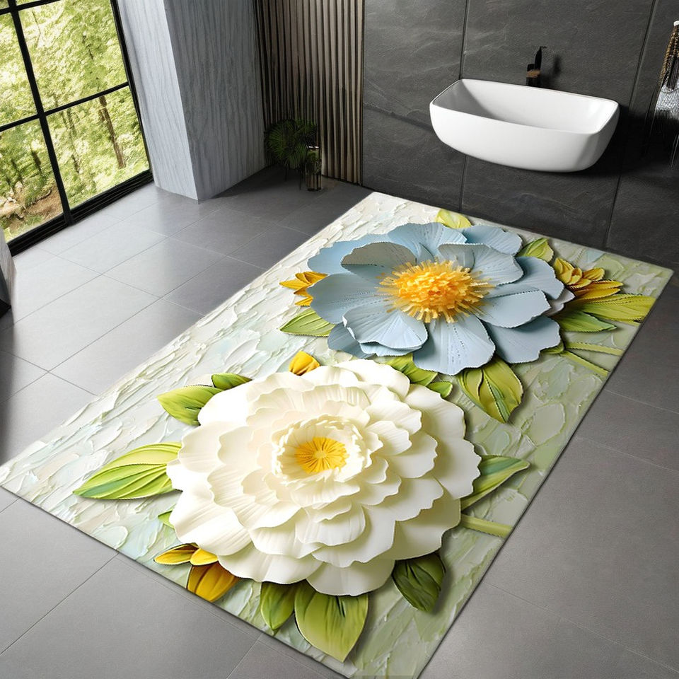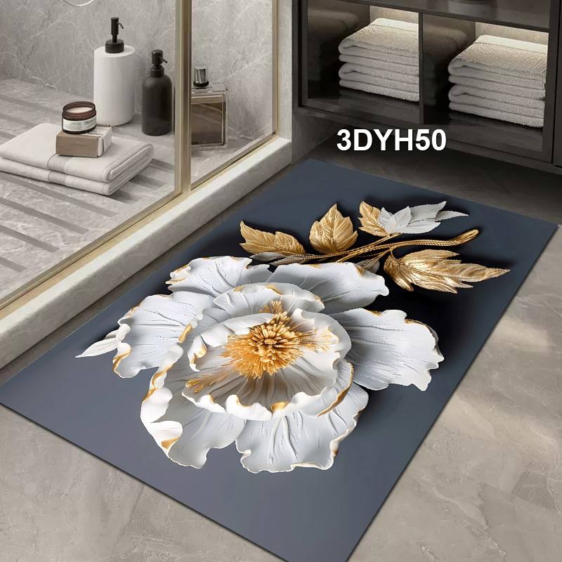 Tappetino da Bagno Floreale Stampato in 3D, Lavabile, Super Assorbente, in Diatomite con Retro in Gomma Antiscivolo, Asciugatura Rapida