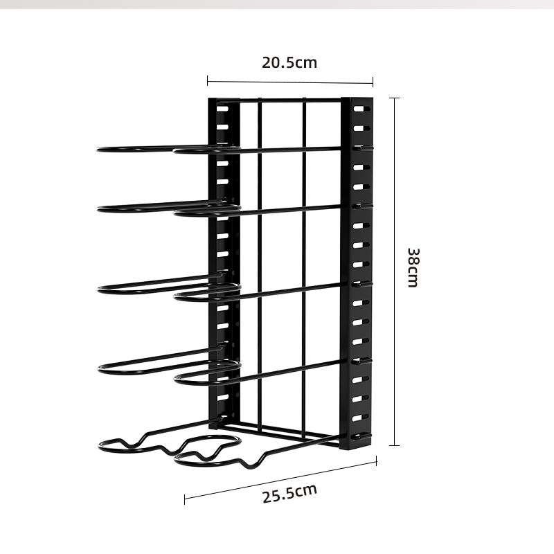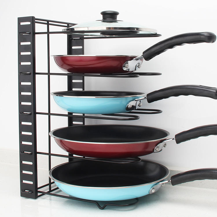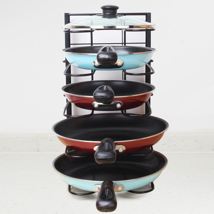 Vendita calda a 5 strati porta vaschetta in metallo resistente in acciaio Organizer Rack ripiano pieghevole pentola per l'organizzazione di mobili da cucina