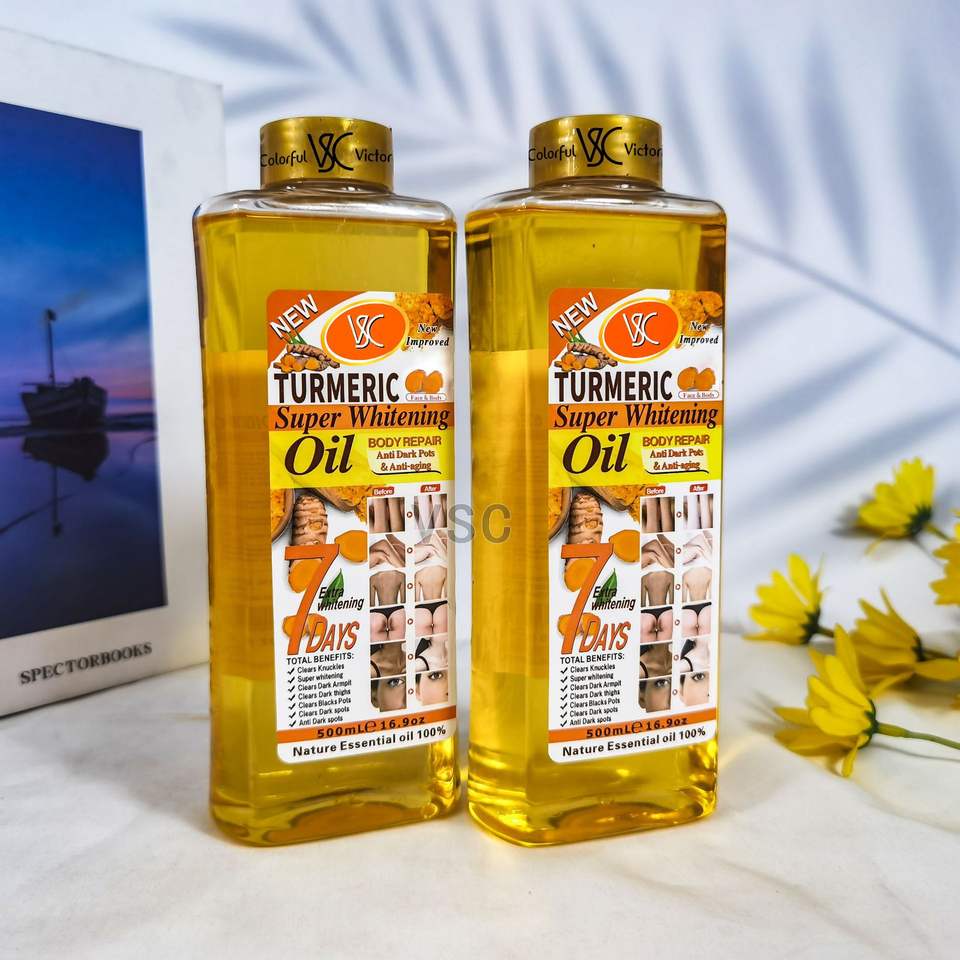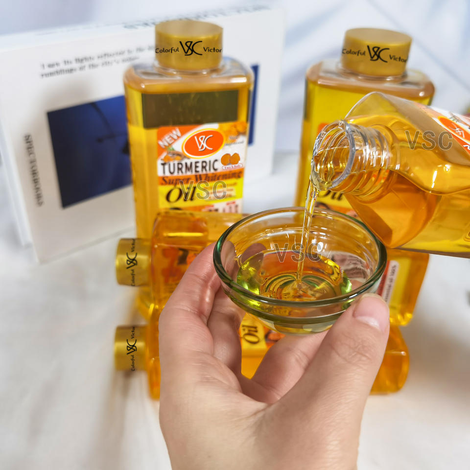 Vendita calda 500ml di olio essenziale di curcuma pura oro Veet pelle Super sbiancante idratante alleggerimento carota mandorla corpo olio da massaggio