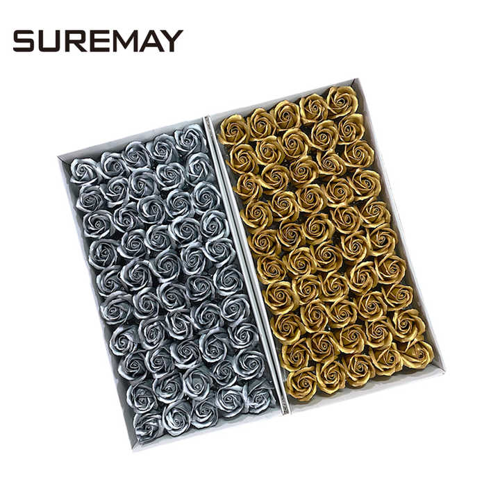 Offerta Speciale: Bouquet di Fiori Artificiali da 5cm per Matrimoni, Decorazioni per San Valentino e Natale, Scatole Regalo con Rose di Sapone a 3 Strati Oro e Argento