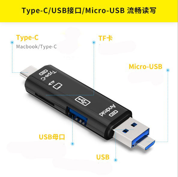 Nome dell'articolo:Adattatore OTG per lettore di schede TF Micro USB tipo C USB 2.0 5in1