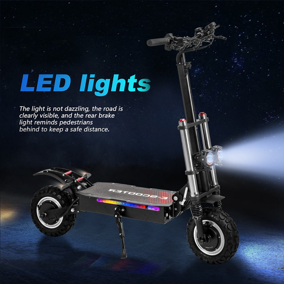 Pneumatici fuoristrada da 11 pollici: Dotato di pneumatici fuoristrada da 11 pollici, questo scooter offre un'aderenza e una stabilità superiori su vari terreni, rendendolo adatto sia per ambienti urbani che accidentati.