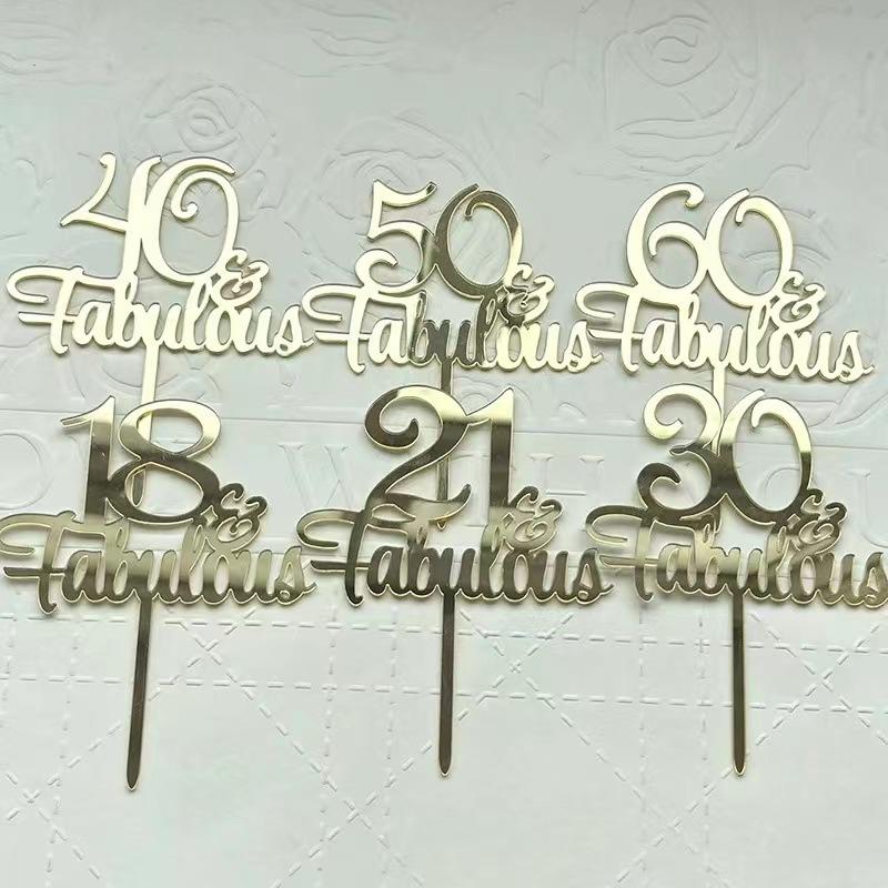 Hot Sale Acrylic Cake Topper for Party Happy Birthday Fabulous for Christmas Graduation 60th 50th 40th 30th 18th Birthday Cakes