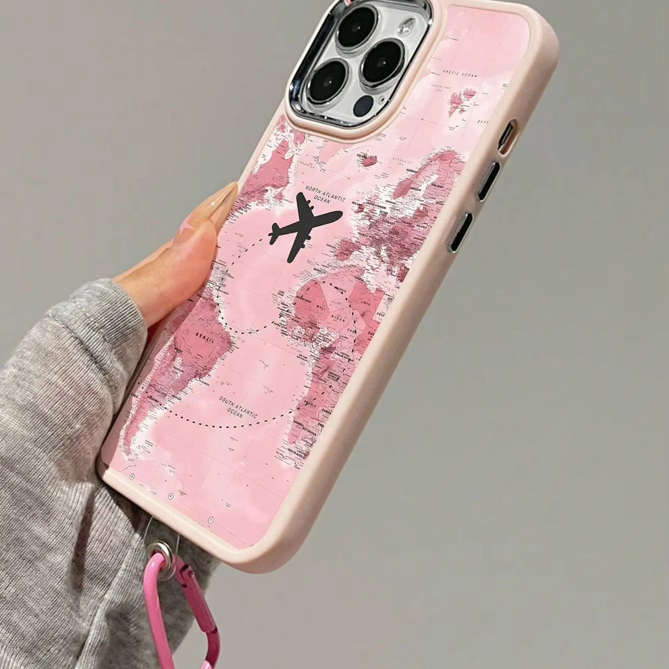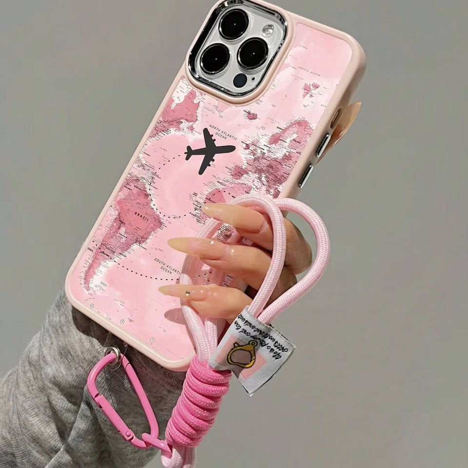 Cover per iPhone 15 14 Plus 13 12 17 Pro Max con mappa dell'aereo e cordino, accessori per cellulare, custodia posteriore - Offerta imperdibile