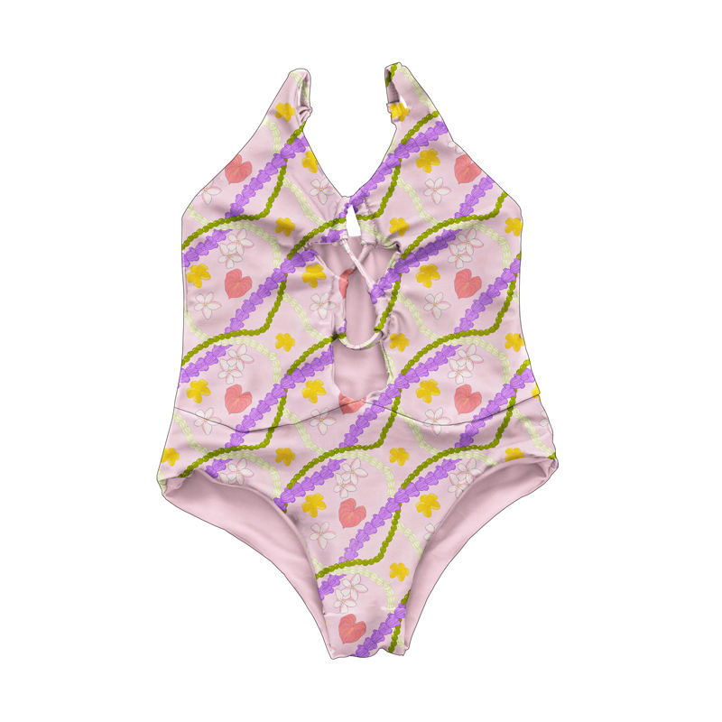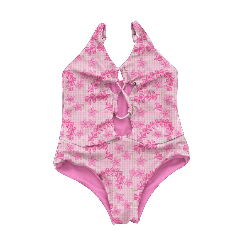 Hot Sale Baby Girl Swimming Suit Hawaii Style Flower Pattern Prints Sleeveless Breathable One-Piece Kids Girls Swimwear
