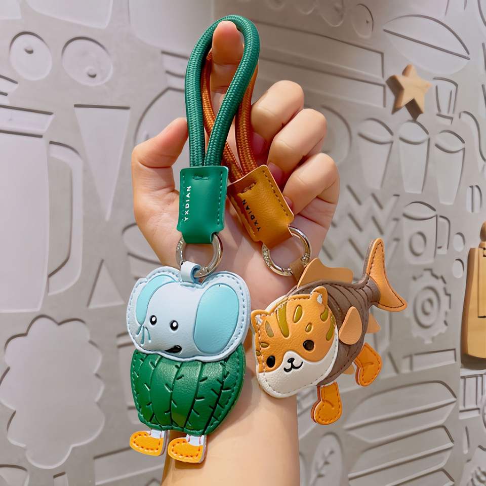 Product name:Quality Leather Shark Cat Cactus Elephant Keychain