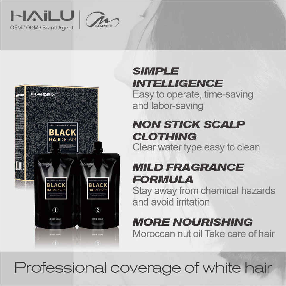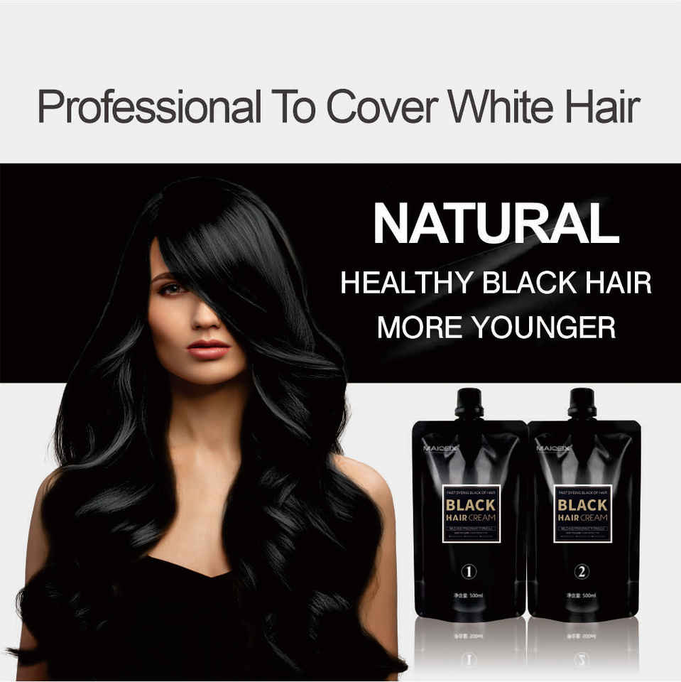 Hot Sale Black Covering Gray Hair Color Without Damage Botanical Professional Hair Dye for Grey Pure Black Hair Color