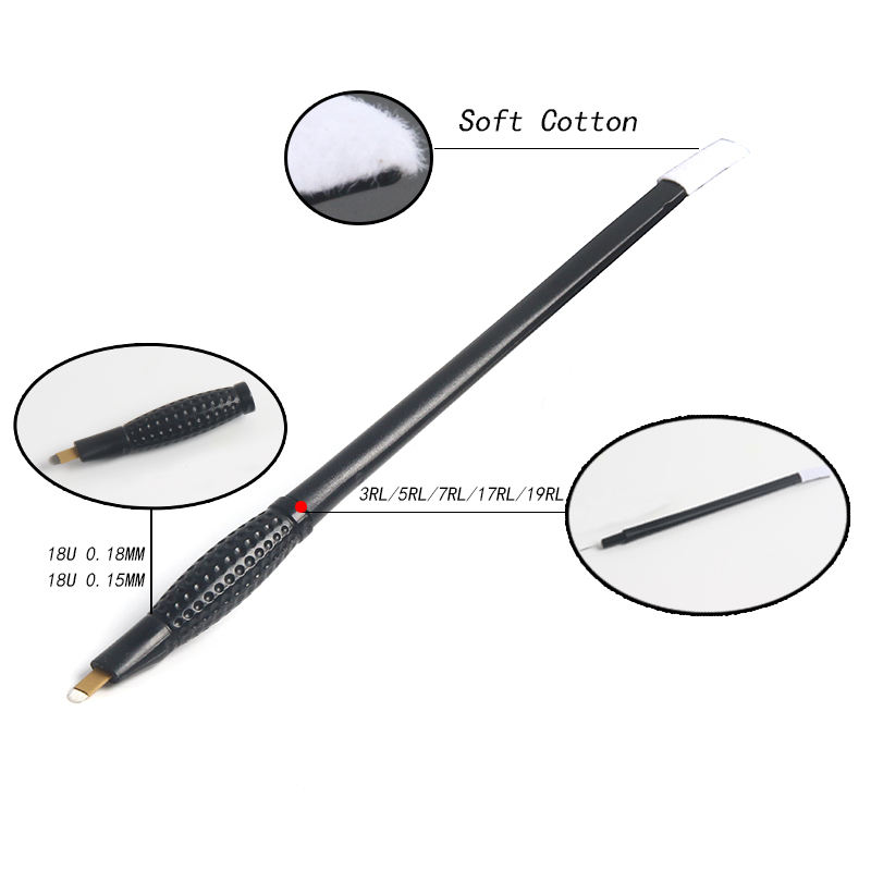 Hot Sale Black Eccentric Disposable Microblading Tool 18 U Blade for Permanent Make up Eyebrow Tattoo