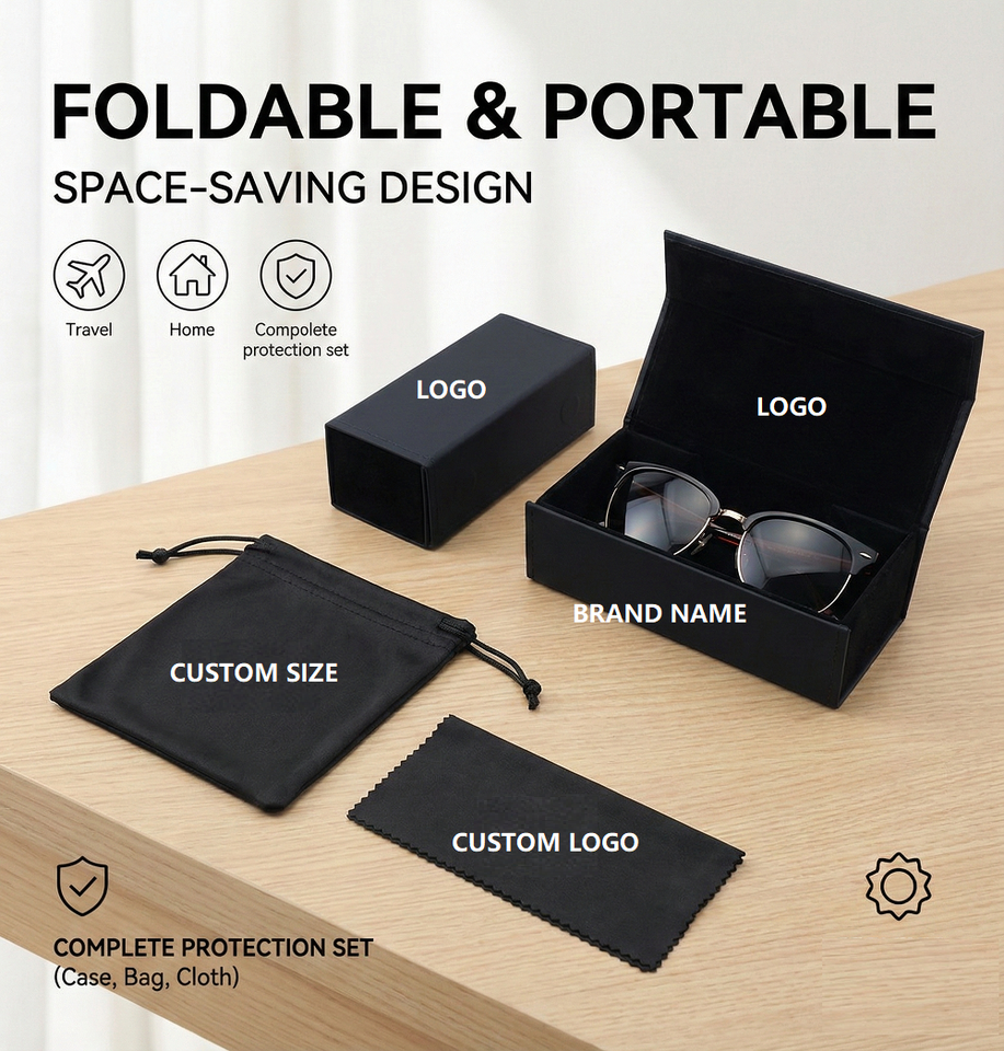 Hot Sale Black Square Foldable Eyewear Box Set Eye Glass Case Hard Pu Leather Sunglasses Packing Eyeglasses Folding Case