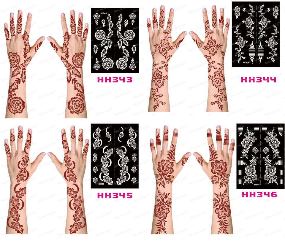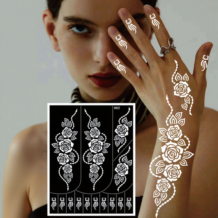 Hot Sale Blooming Rose India Henna Tattoo Stencil Reusable Hand & Foot Body Art Tattoo Template