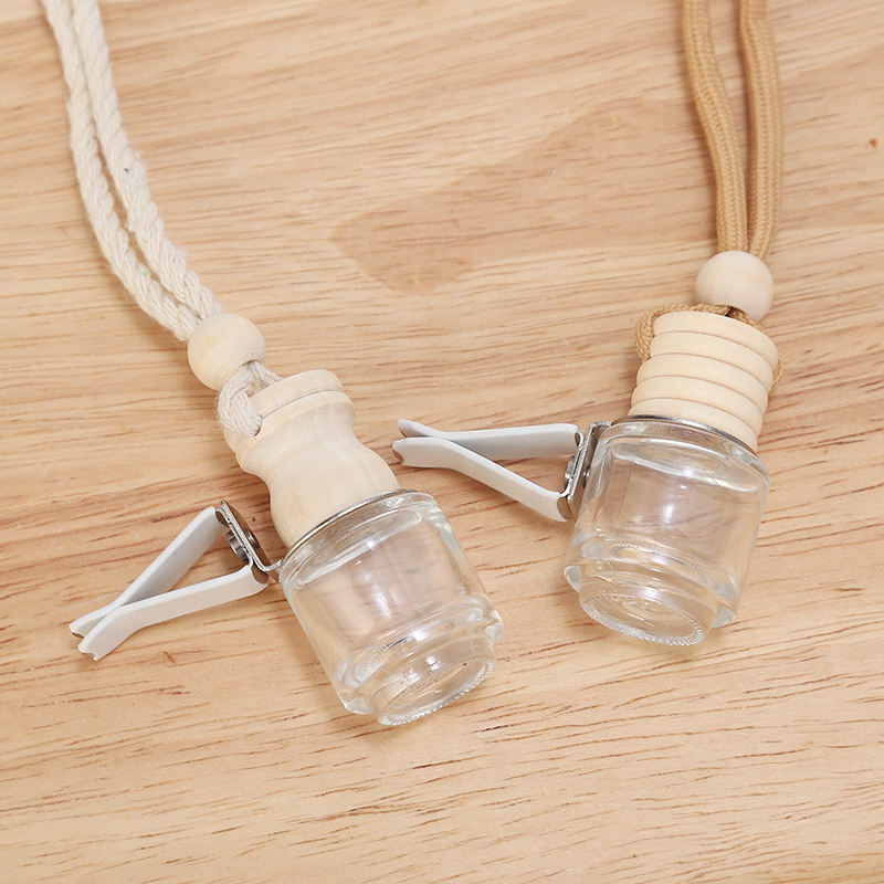 Hot Sale Bottles Hanging Wood Car Perfumed Transparent Essential Oils Diffuser Vial Glass Bamboo Caps Containers with Drawing