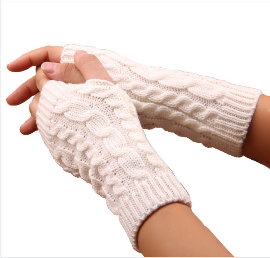 Vendita calda cavo in maglia bianco senza dita acrilico moda donna guanto invernale