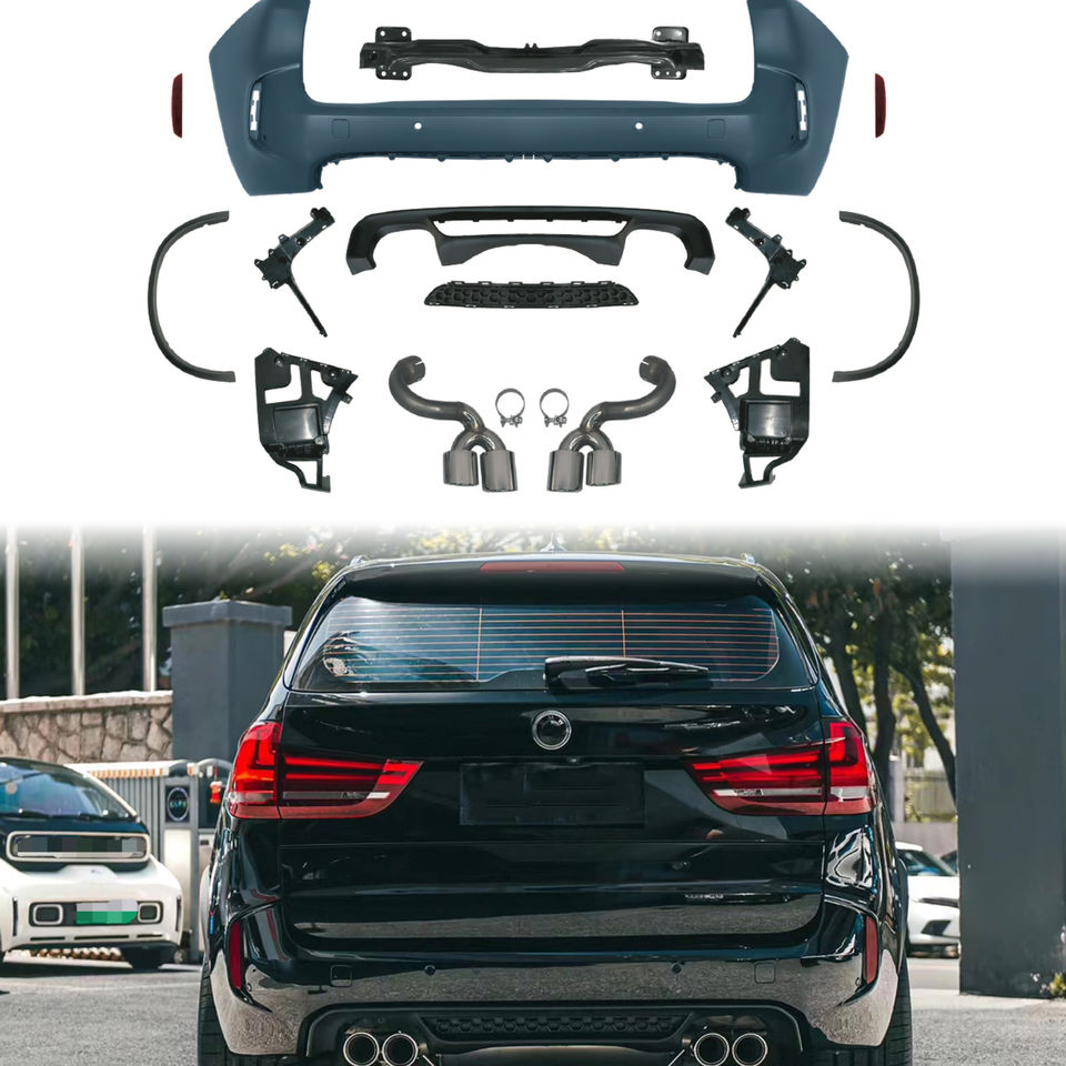 Vendita calda Kit carrozzeria per BMW X5 F15 aggiornamento 2014 2018 X5M stile paraurti posteriore assemblaggio minigonne laterali con farfallino nuovo design