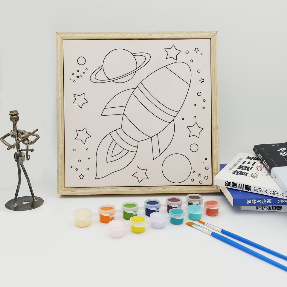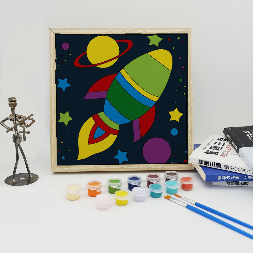 Hot Sale Cartoon Canvas Painting DIY Romantic Universe and Roctet Creative and Imaginative
