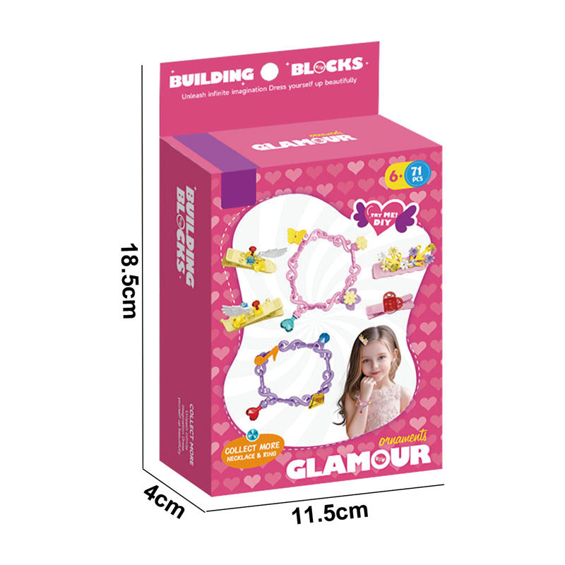 Blocchi da Costruzione Educativi per Bambini, Set di Gioielli 71 Pezzi, Gioco Fai-da-Te con Fermagli per Capelli e Braccialetti