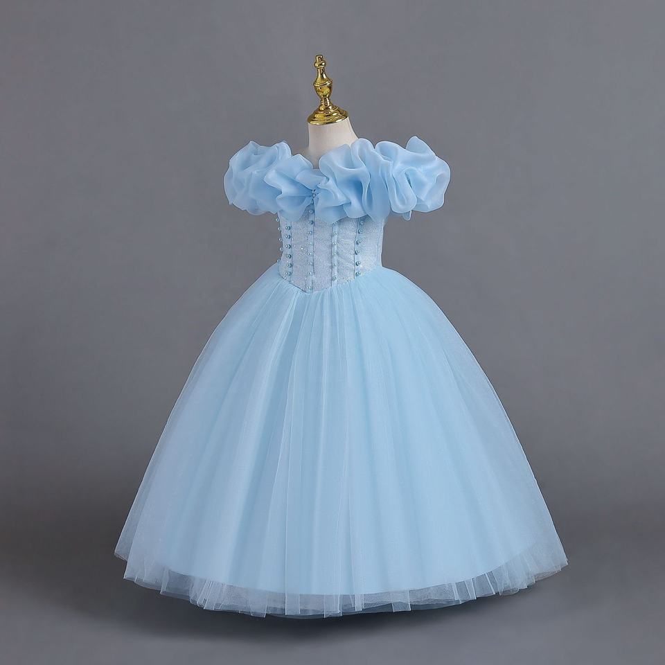Vestito da Principessa con Spalline Sottili in Pizzo per Bambine, Abito da Damigella per Natale, Vestito Rosa per Bambine