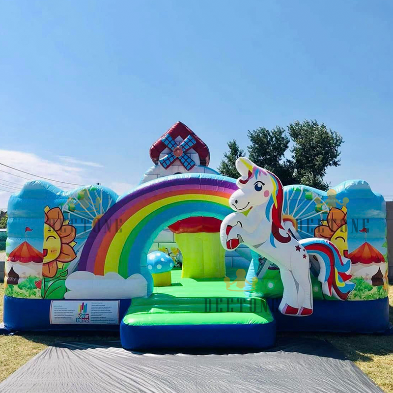 Vendita Calda Parco Giochi Commerciale Percorso a Ostacoli Castello Gonfiabile Tema Unicorno