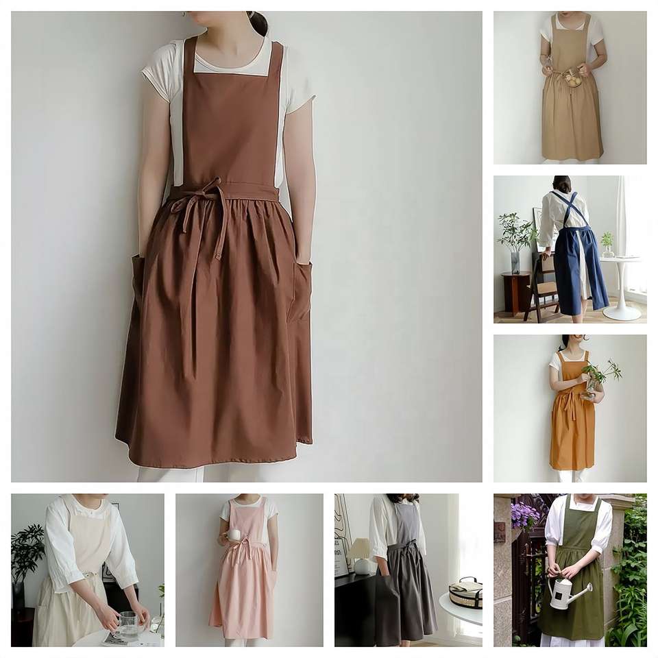 Vendita calda vestito da cucina Cross Back cotone impermeabile da donna grembiule da cucina con tasche